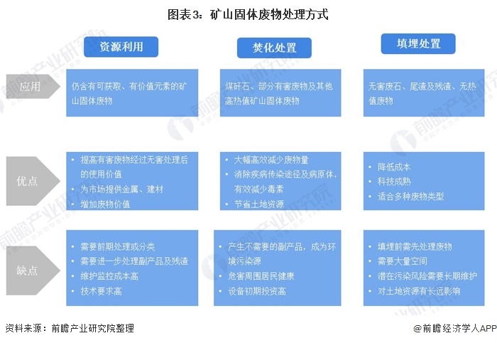礦山固體廢物處理有三種常見(jiàn)方式,分別為資源利用、焚化處置及填埋處置。