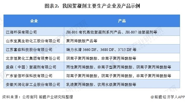 目前,我國已經(jīng)成為絮凝劑產(chǎn)品全球第一大產(chǎn)銷國,全國現(xiàn)有絮凝劑生產(chǎn)廠商百余家。國內(nèi)生產(chǎn)絮凝劑的重點廠商有江海環(huán)保有限公司、山東寶莫生物化工股份有限公司、江蘇富淼科技股份有限公司、安徽天潤化學(xué)工業(yè)股份有限公司、北京恒聚化工集團有限責(zé)任公司、愛森(中國)絮凝劑有限公司、三門峽弘奧生物科技股份有限公司、中國石油大慶煉化公司等。