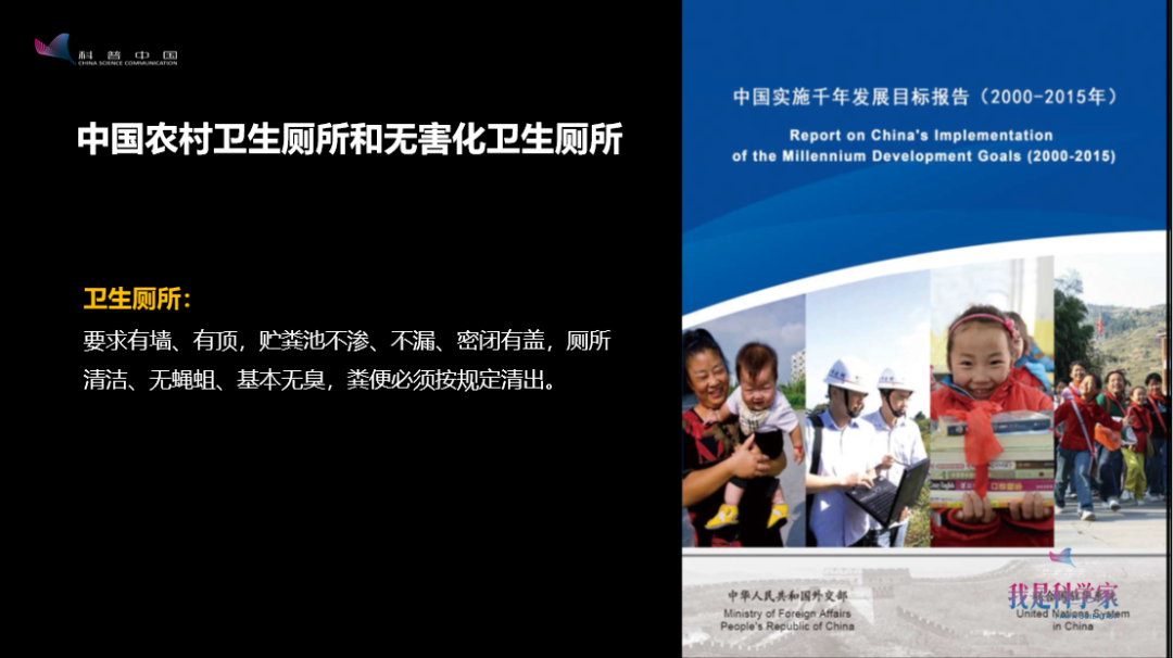 盡管在實現(xiàn)這個千年發(fā)展目標的進程中,最終的目標沒有實現(xiàn),但是廁所的覆蓋率還在逐漸增加。反映到兒童死亡率上,即是死亡率的逐年下降。這是一個大好事,也給我們很多動力去堅持不懈地做廁所的事情。更好的消息是——我們國家在千年發(fā)展目標里發(fā)布了白皮書,宣布中國滿足了千年發(fā)展目標的要求。