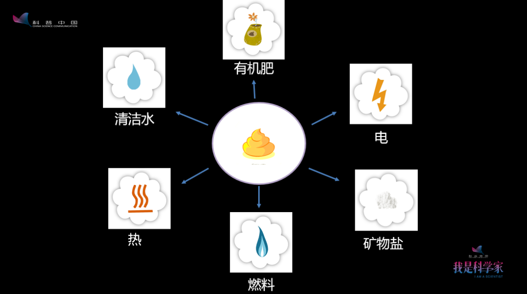 糞便可以做肥料,但是要處理,保證它安全。還有氮肥、磷肥、鉀肥,我們種莊稼的時候加了這些肥料,長成了糧食,長成了蔬菜;或者通過喂飼料,養(yǎng)成了雞鴨魚肉。這些元素都進到你的家庭,然后90%又跑到糞便里去了。