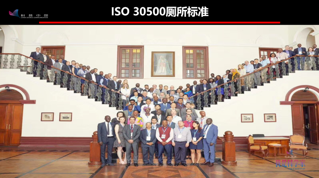 除了這個標準,國際上有一個ISO 30500的廁所標準,它也是針對我們要研發(fā)的廁所提出了一些控制的指標。這個標準有40多個國家的代表去參加編寫,表明它還是非常重要的,也受到了各個國家的關(guān)注。我也是代表中國參加了標準的編寫。這里面最后一張照片,就是我們這個標準最后完成的時候,40多個國家的代表的一個合影。