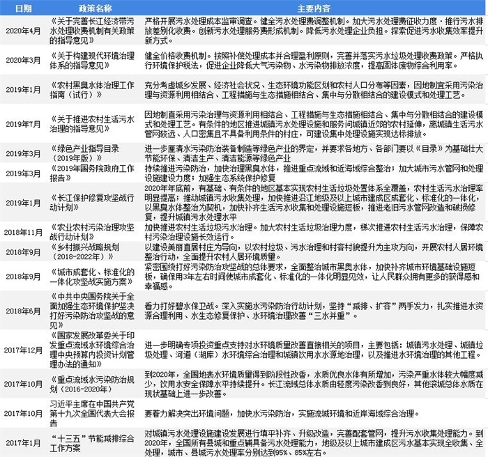 圖表2:2017-2020年中國(guó)水環(huán)境治理行業(yè)主要政策