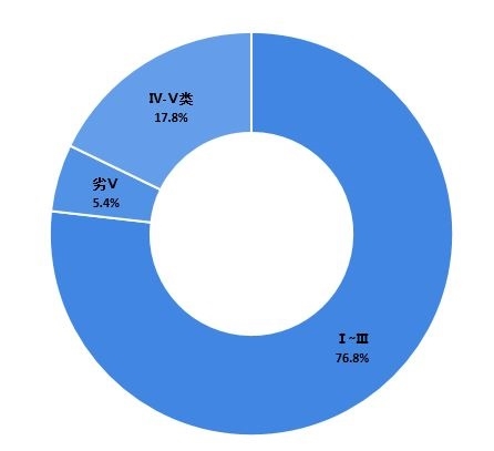 生態(tài)環(huán)境部 圖表4:2020年重點(diǎn)監(jiān)測(cè)胡泊(水庫(kù))水質(zhì)分布(單位:%)