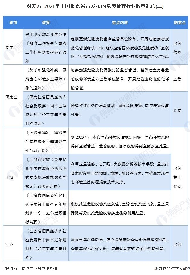 原標(biāo)題:重磅!2021年中國及31省市危廢處理行業(yè)政策匯總與解讀(全) 圍繞《危廢名錄》建立行業(yè)政策體系