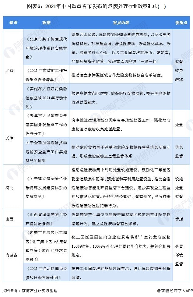 本文核心內(nèi)容:中國危廢處理行業(yè)政策匯總、中國危廢處理行業(yè)發(fā)展規(guī)劃、2021年重點(diǎn)省市危廢處理政策匯總等
