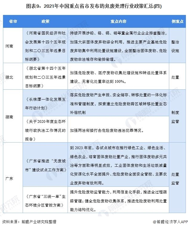 重點(diǎn)省市危廢處理最新推動(dòng)政策匯總