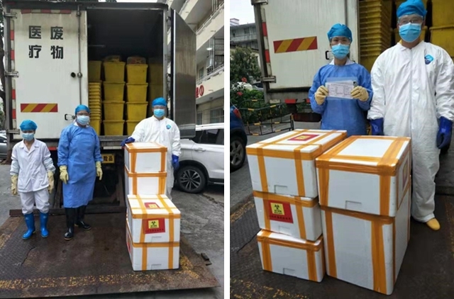 與此同時(shí),湛江粵綠項(xiàng)目還推行疫期收運(yùn)措施:依據(jù)各醫(yī)療機(jī)構(gòu)反饋廢物暫存信息,制定合理、完善的廢物收運(yùn)計(jì)劃,選擇最佳廢物收運(yùn)時(shí)間,運(yùn)輸線路盡量避開人口密集區(qū)域和交通擁堵路段等敏感區(qū)域;針對(duì)實(shí)際情況對(duì)不同醫(yī)療機(jī)構(gòu)采取定期、分類收集措施,并根據(jù)廢物不同形態(tài)選擇不同盛裝設(shè)備或包裝方式;對(duì)一線醫(yī)療廢物收集、運(yùn)輸工作人員,進(jìn)行防疫技能和職業(yè)衛(wèi)生防護(hù)專門培訓(xùn);對(duì)運(yùn)輸車輛安全警示標(biāo)志進(jìn)行經(jīng)常性維護(hù),及時(shí)出車、回廠和檢查保養(yǎng);運(yùn)輸車輛配備必要工器具、個(gè)人防護(hù)用品和聯(lián)絡(luò)通訊設(shè)備;對(duì)各收運(yùn)車輛行車路況進(jìn)行跟蹤了解,及時(shí)通報(bào)路況,避免運(yùn)載車輛長時(shí)間道路逗留。