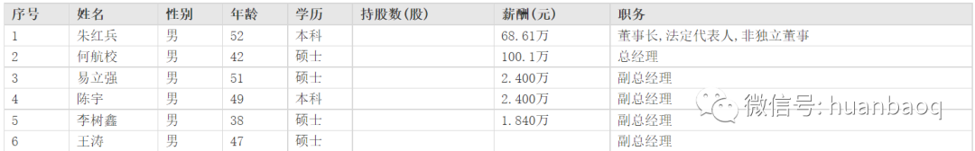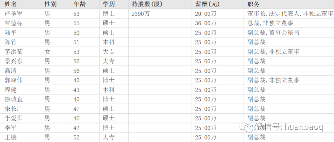 相對(duì)于董事長(zhǎng)和總經(jīng)理,副總經(jīng)理相當(dāng)于公司三把手,數(shù)量也更多。縱觀每家環(huán)保上市企業(yè),副總經(jīng)理的數(shù)量雖然不盡相同,但少的也有2-3個(gè),多的則有5-6個(gè)。為了方便統(tǒng)計(jì)和比較,我們僅從各家企業(yè)中挑選報(bào)酬相對(duì)較高的一位作為代表。在我們統(tǒng)計(jì)的79位上市環(huán)企副總經(jīng)理名單中,年薪百萬以上的有25位,約占32%;年薪50萬元-100萬元之間的有41位,占比52%,約占半數(shù);年薪不足50萬元的則要13位,約占16%(如圖七所示)。這其中,盈峰環(huán)境副總裁陳培亮遙遙領(lǐng)先,年收入625萬元;排名第二的還是格林美,其副總王敏去年薪酬312萬元,她的另外一個(gè)身份則是格林美董事長(zhǎng)許開華的妻子。在圖7“副總經(jīng)理薪酬TOP20榜單”中,排名靠前的企業(yè)絕大多數(shù)也都是業(yè)績(jī)表現(xiàn)好,坐落于北上廣深的大型環(huán)保上市企業(yè),如中持股份、格林美、首創(chuàng)股份、綠色動(dòng)力、清新環(huán)境等。圖七:上市環(huán)企副總經(jīng)理薪酬TOP20榜單這些企業(yè)的高管不僅百萬年薪,很多還都大量持有公司股票,從幾十萬股到幾百萬股不等。以中持股份原副總朱向東為例(最近剛剛接替邵凱成為公司總經(jīng)理),按照6月10日中持股份9.93元/股的收盤價(jià),他持有132萬股計(jì)算,他目前已是擁有1311萬元的身價(jià)了,這還不包括每年155.4萬元的年薪(如圖八所示)。圖八:中持股份高管團(tuán)隊(duì)收入(數(shù)據(jù)/東方財(cái)富網(wǎng))除了中持,格林美的七個(gè)副總經(jīng)理也幾乎清一色年入百萬,并大量持有公司股票(如圖九所示)。圖九:格林美高管團(tuán)隊(duì)收入(數(shù)據(jù)/東方財(cái)富網(wǎng))清新環(huán)境也不錯(cuò),總裁和四個(gè)副總的年薪,都比董事長(zhǎng)鄒艾艾要高(如圖十所示)。圖十:清新環(huán)境高管團(tuán)隊(duì)收入(數(shù)據(jù)/東方財(cái)富網(wǎng))還有首創(chuàng)股份和綠色動(dòng)力,高管團(tuán)隊(duì)年薪100萬-300萬不等,待遇也要高于大多數(shù)上市環(huán)企(如圖十一、圖十二所示)。圖十一:首創(chuàng)股份高管團(tuán)隊(duì)收入(數(shù)據(jù)/東方財(cái)富網(wǎng))圖十二:綠色動(dòng)力高管團(tuán)隊(duì)收入(數(shù)據(jù)/東方財(cái)富網(wǎng))在眾多環(huán)保企業(yè)中,有一家企業(yè)顯得比較“特別”,它既不坐落于北上廣深等一線大都市,去年的營(yíng)收也不是環(huán)保行業(yè)排名前20強(qiáng),但對(duì)高管團(tuán)隊(duì)卻非常“舍得”,又是年薪百萬,又是持股百萬,這家企業(yè)就是崛起于常州的維爾利集團(tuán)(如圖十三所示)。圖十三:維爾利集團(tuán)高管團(tuán)隊(duì)收入(數(shù)據(jù)/東方財(cái)富網(wǎng))從圖中可以看出,維爾利高管的年薪基本都在“百萬級(jí)”左右,很多人持股也都在幾百萬股以上。這樣的利益分配制度,維爾利的高管不努力,公司的業(yè)績(jī)不優(yōu)秀都太不可能了。當(dāng)然,高收入、高待遇也不只是少數(shù)環(huán)保企業(yè)的專利,絕大多數(shù)環(huán)保上市企業(yè)的高管團(tuán)隊(duì),包括總經(jīng)理和副總經(jīng)理級(jí)別的,年薪都位于50萬元-100萬元之間,可能還會(huì)有股票、分紅等隱性福利。眾多環(huán)保企業(yè)中,還有2家企業(yè)比較“另類”,那就是中國(guó)天楹和城發(fā)環(huán)境。在圖十四“副總經(jīng)理年薪收入后10名榜單”中,可以看到這兩家企業(yè)的副總年薪偏少。圖十四:副總經(jīng)理年薪收入后10名的名單中國(guó)天楹,創(chuàng)始人是嚴(yán)圣軍、茅洪菊夫婦,除總裁曹徳標(biāo)年薪36萬元外,其余副總裁一律年薪25萬元,月工資2.1萬(如圖十五所示)。圖十五:中國(guó)天楹高管團(tuán)隊(duì)收入(數(shù)據(jù)/東方財(cái)富網(wǎng))城發(fā)環(huán)境,剛剛花了12.6億元并購(gòu)啟迪環(huán)境資產(chǎn),除總經(jīng)理年入100萬元以外,其余三位副總年薪都低至2.4萬元,月工資只有2000元,著實(shí)令人費(fèi)解(如圖十六所示)。圖十六:城發(fā)環(huán)境高管團(tuán)隊(duì)收入(數(shù)據(jù)/東方財(cái)富網(wǎng))這里面的原因,外部人可能很難知道,或許是有其特殊的隱情吧。全部看下來,大家對(duì)于環(huán)保行業(yè)高管的收入應(yīng)該有一個(gè)大概的了解了。