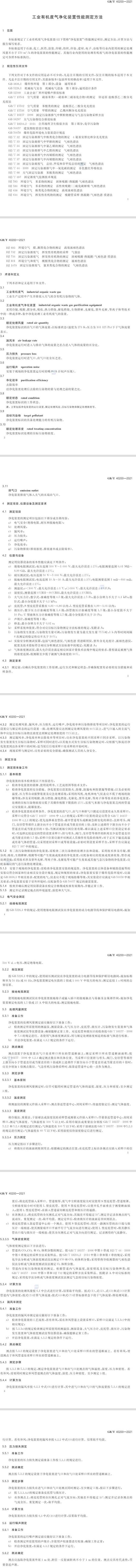 本標(biāo)準(zhǔn)規(guī)定了工業(yè)有機(jī)廢氣凈化裝置(以下簡稱“凈化裝置”)性能測定項(xiàng)目、測定方法、計(jì)算方法與報(bào)告編寫要求。