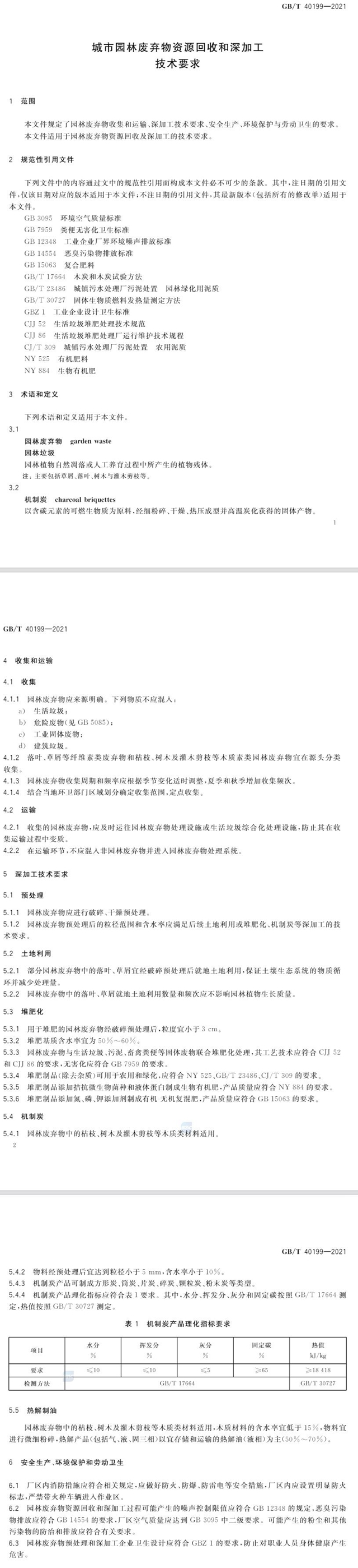 本文件規(guī)定了園林廢棄物收集和運輸、深加工技術(shù)要求、安全生產(chǎn)、環(huán)境保護(hù)與勞動衛(wèi)生的要求。