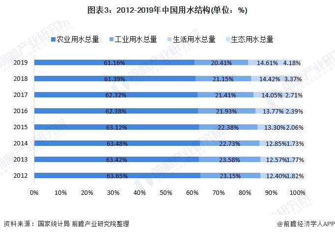 從近年變化趨勢來看,我國生活用水和生態(tài)用水占比逐年增長,農(nóng)業(yè)用水和工業(yè)用水占比逐年減少,可見我國農(nóng)業(yè)用水和工業(yè)用水的需求有所減少。