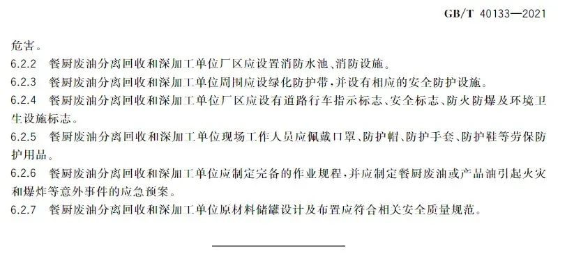 該國(guó)標(biāo)對(duì)餐廚廢油的分離回收技術(shù)、深加工技術(shù)與產(chǎn)品及環(huán)境保護(hù)和勞動(dòng)衛(wèi)生做出規(guī)范要求,是我國(guó)第一項(xiàng)餐廚廢油回收和深加工技術(shù)的國(guó)家標(biāo)準(zhǔn),改觀了餐廚廢油資源回收和深加工處于有技術(shù)、無(wú)標(biāo)準(zhǔn)的狀態(tài),對(duì)于餐廚廢油資源回收和深加工及產(chǎn)品具有深遠(yuǎn)的指導(dǎo)性意義。