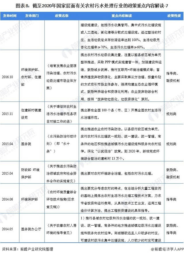 ——國家層面農(nóng)村污水處理行業(yè)政策匯總