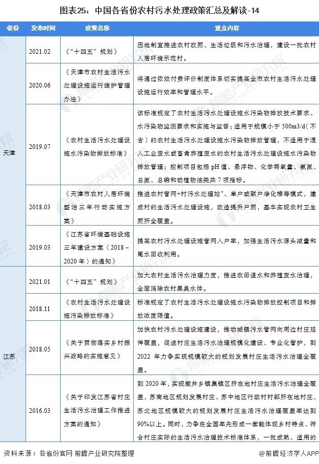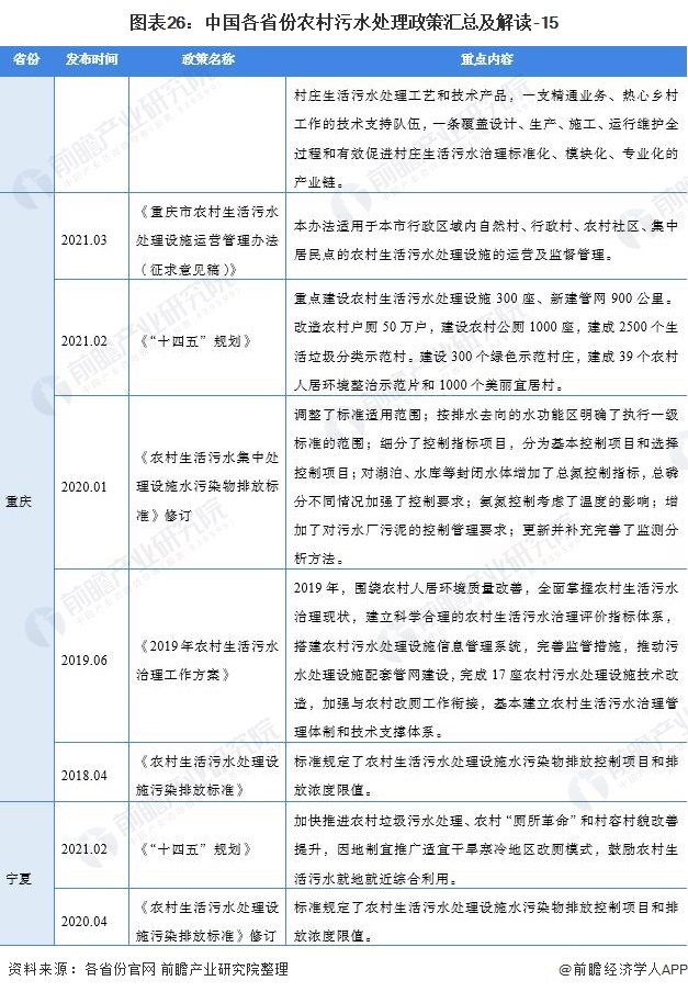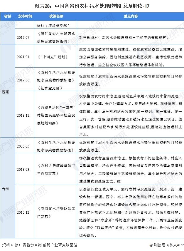 ——31個(gè)省(市、自治區(qū))農(nóng)村污水處理行業(yè)政策匯總