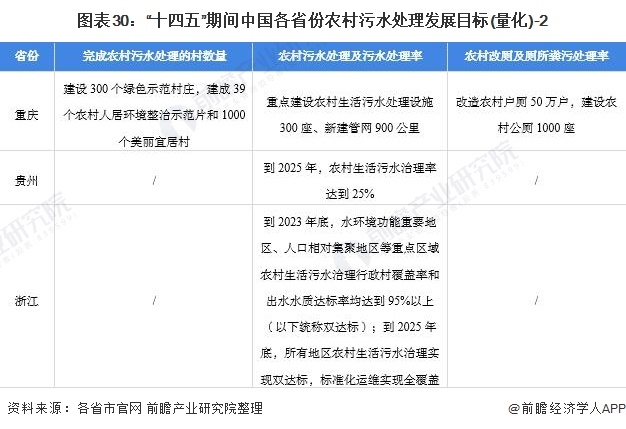 ——31個(gè)省(市、自治區(qū))農(nóng)村污水處理行業(yè)發(fā)展目標(biāo)解讀