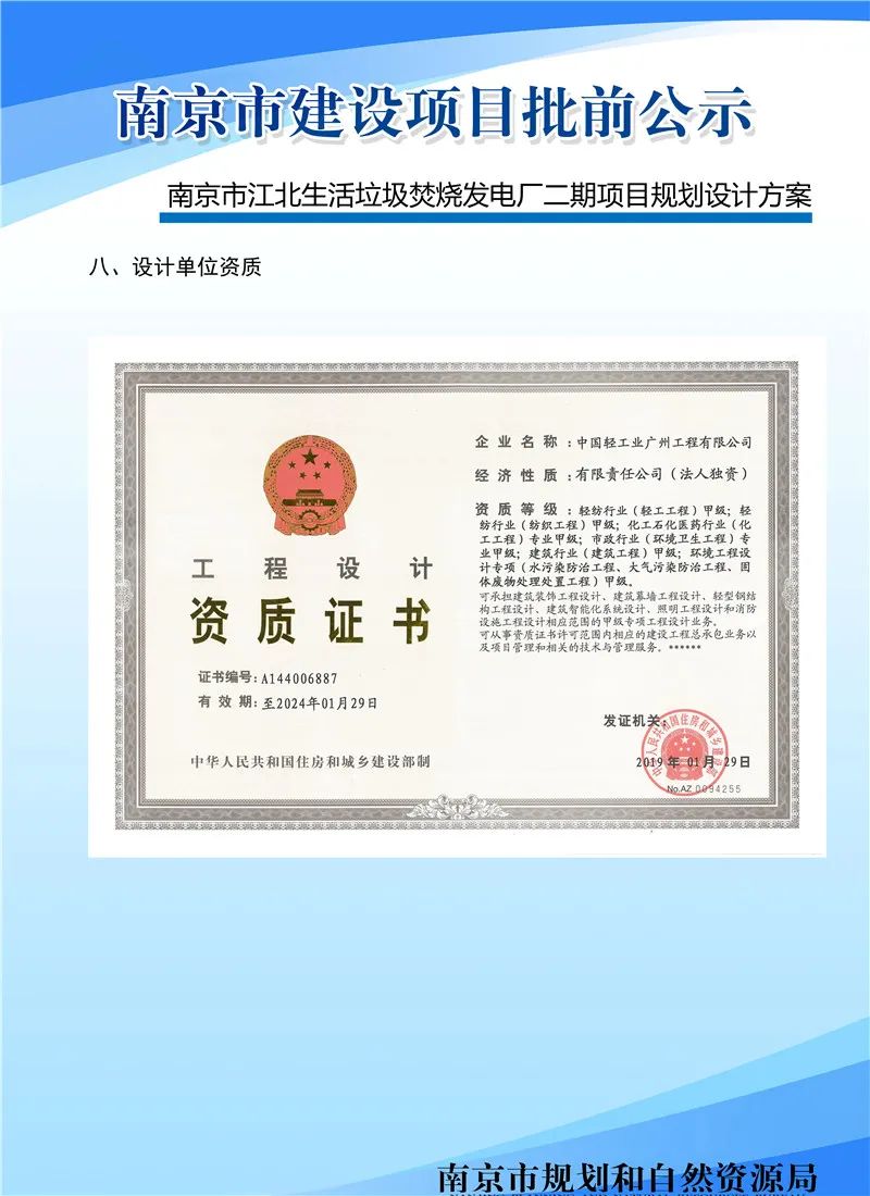 該項目的建設(shè)單位為南京江北環(huán)保電力有限公司,設(shè)計單位為中國輕工業(yè)廣州工程有限公司。
