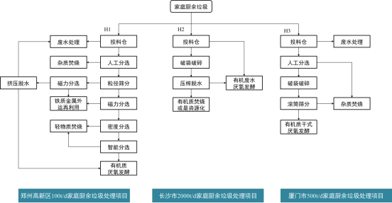 先行實(shí)施生活垃圾強(qiáng)制分類的城市,家庭廚余垃圾的分出率不斷提高,并逐步完善了家庭廚余垃圾的末端處理系統(tǒng)。根據(jù)已開展垃圾強(qiáng)制分類工作城市的成效,并考慮南方與北方、沿海與內(nèi)陸城市的地域差異等因素,分別選取鄭州市高新區(qū)、長(zhǎng)沙市、廈門市建設(shè)的家庭廚余垃圾處理項(xiàng)目,分析其預(yù)分選工藝。