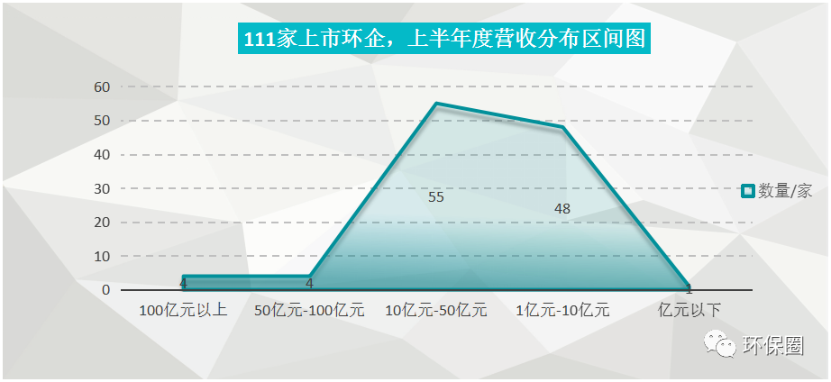 我們先看營(yíng)收榜。今年上半年,111家環(huán)保上市企業(yè)累計(jì)實(shí)現(xiàn)總營(yíng)收2443.77億元,相較于去年同期的2000億元,增加了22%,高于預(yù)期。111家企業(yè)中,營(yíng)收實(shí)現(xiàn)正增長(zhǎng)的高達(dá)97家,占比87%,這一占比相較于上年同期55%,大增32%,再次說(shuō)明了之前被疫情沖擊、資本低估環(huán)保行業(yè),今年上半年迎來(lái)觸底反彈跡象。受中報(bào)業(yè)績(jī)推動(dòng),近期不少環(huán)保個(gè)股迎來(lái)漲停潮。從營(yíng)收分布區(qū)間來(lái)看,111家上市環(huán)企中,上半年突破50億元大關(guān)有8家,除了業(yè)內(nèi)熟悉TOP7之外,如光大環(huán)境(220億元,44%)、深圳能源(132.63億元,50.9%)、中國(guó)天楹(114.64億元,7.15%)、北控水務(wù)(113.6億元,10%)、首創(chuàng)環(huán)保(86.26億元,24%)、格林美(80億元、42.51%),盈峰環(huán)境(54.5億元、-3%)外,還新進(jìn)一名危廢行業(yè)龍頭企業(yè)——浙富控股,上半年?duì)I收大增118.83%至68.73億元。仔細(xì)觀察,頭部企業(yè)陣營(yíng)變化不大,相較于去年同期“8家企業(yè)有5家營(yíng)收都在下滑”的不利形勢(shì)下,今年半年度TOP8企業(yè)營(yíng)業(yè)收入,幾乎都實(shí)現(xiàn)了正向增長(zhǎng)。下降一個(gè)檔次,我們發(fā)現(xiàn),半年度營(yíng)收在10億元-50億元區(qū)間的就比較多了,有55家,加上之前8家,半年度營(yíng)收過(guò)10億元的累計(jì)達(dá)到63家,相較于去年的50家,足足增加了13家,說(shuō)明后疫情時(shí)代有企業(yè)暗暗努力,強(qiáng)勢(shì)反彈,排名提升較快有城投控股及旗下的上海環(huán)境、城發(fā)環(huán)境、中原環(huán)保等。而營(yíng)收區(qū)間位于1億元-10億元的“小而美”企業(yè),也不少,有48家,它們大多是近幾年剛IPO的科創(chuàng)板、創(chuàng)業(yè)板“新兵”(如圖四所示)。圖四:111家上市環(huán)企,上半年度營(yíng)收分布區(qū)間圖▼