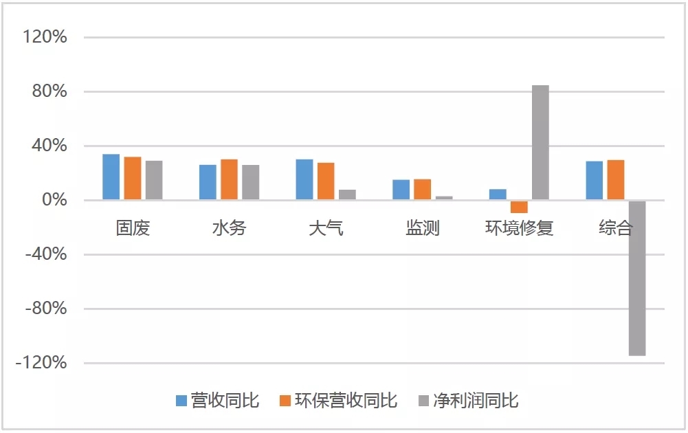 圖3 各細(xì)分領(lǐng)域環(huán)保上市公司2021年上半年業(yè)績(jī)同比變化情況(%)