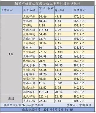 原標題:20家市值百億級環(huán)保企業(yè)“未來重點+半年報”發(fā)布