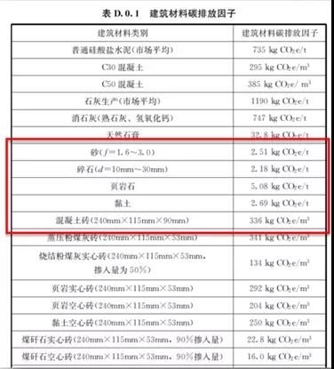 在“雙碳”目標(biāo)下,來(lái)看建筑垃圾處理?!督ㄖ寂欧庞?jì)算標(biāo)準(zhǔn)》(GB/T 52366-2019)6.2.5條中規(guī)定,建材生產(chǎn)時(shí),當(dāng)使用低價(jià)值廢料作為原料時(shí),可忽略其上游過(guò)程的碳過(guò)程。當(dāng)使用其他再生原料時(shí),應(yīng)按其所替代的初生原料的碳排放的50%計(jì)算;建筑建造和拆除階段產(chǎn)生的可再生建筑廢料,可按其可替代的初生原料的碳排放的50%計(jì)算,并應(yīng)從建筑碳排放中扣除。下表顯示,砂、碎石等骨料的碳排放因子比混凝土磚的碳排放小了2個(gè)數(shù)量級(jí)。
