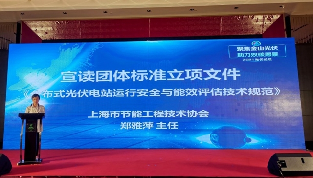 上海市節(jié)能工程技術(shù)協(xié)會辦公室主任鄭雅萍宣讀團體標準《分布式光伏電站運行安全與能效評估技術(shù)規(guī)范》工作組立項文件。