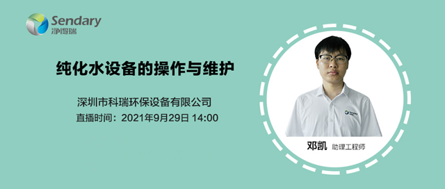 2021年9月29日14:00,凈得瑞帶來【純化水設(shè)備的操作和維護(hù)】直播分享,歡迎大家搬好小板凳,直達(dá)直播間。