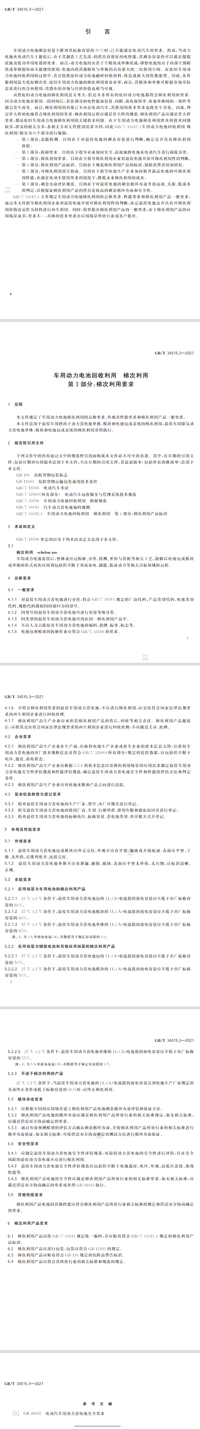 本文件是GB/T 34015“車用動(dòng)力電池回收利用、梯次利用”的第3部分。GB/T 34015已經(jīng)發(fā)布了以下部分: