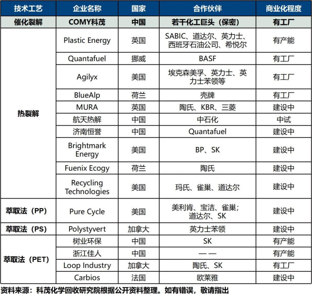 4.中國(guó)的化學(xué)回收企業(yè)已經(jīng)過(guò)10余年技術(shù)積累,擁有世界前沿的技術(shù),雖然短期內(nèi)仍受政策不完善的限制,但具備大規(guī)模快速發(fā)展的基礎(chǔ)。