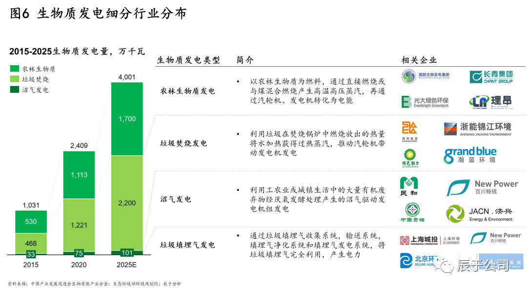 辰于預(yù)測(cè),隨著“30·60”雙碳目標(biāo)引導(dǎo)下的能源革命和能源轉(zhuǎn)型,以及相關(guān)政策支持(例如明確對(duì)存量、增量的生物質(zhì)發(fā)電項(xiàng)目將按照新增不欠的原則由國(guó)家繼續(xù)給予電價(jià)補(bǔ)貼,并鼓勵(lì)金融機(jī)構(gòu)按照市場(chǎng)化原則對(duì)列入補(bǔ)助項(xiàng)目清單的企業(yè)予以支持),生物質(zhì)能市場(chǎng)“十四五”期間的投資和運(yùn)營(yíng)規(guī)模將持續(xù)提升,復(fù)合增長(zhǎng)率16.6%,到2025年達(dá)到3700億元規(guī)模(見(jiàn)圖4)。投資方面,預(yù)計(jì)生物天然氣投資額最高,增長(zhǎng)也最快;運(yùn)營(yíng)方面,生物質(zhì)發(fā)電占比最高,但生物天然氣的增速最快。