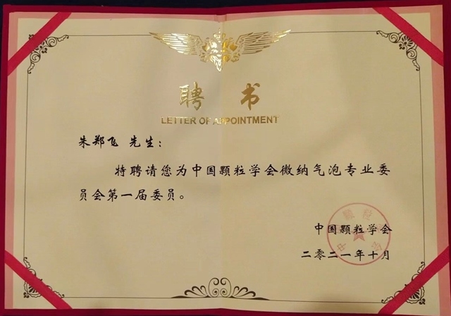 2021年10月22日-25日,微納氣泡委員會(huì)年會(huì)在中國(guó)常州召開。本次年會(huì)由中國(guó)顆粒學(xué)會(huì)主辦,江蘇如克環(huán)保設(shè)備有限公司(以下簡(jiǎn)稱“如克環(huán)保”)應(yīng)邀參加,并提供年會(huì)贊助。會(huì)上,如克環(huán)保總的朱鄭飛總經(jīng)理被聘任為微納氣泡委員會(huì)第一屆委員。