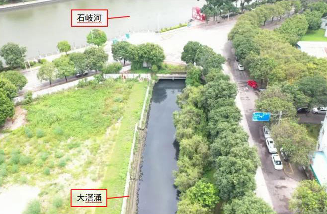 ▼2021年7月30日,督察組使用無(wú)人機(jī)拍攝,大滘涌水體發(fā)黑,與石岐河形成明顯對(duì)比