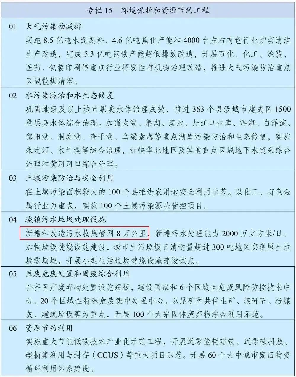 例如,在“十四五”規(guī)劃第三十八章第二節(jié)中,“推進(jìn)城鎮(zhèn)污水管網(wǎng)全覆蓋”就排在精準(zhǔn)提標(biāo)、污泥無(wú)害化、污水資源化等之前,在水污染治理中位列第一。