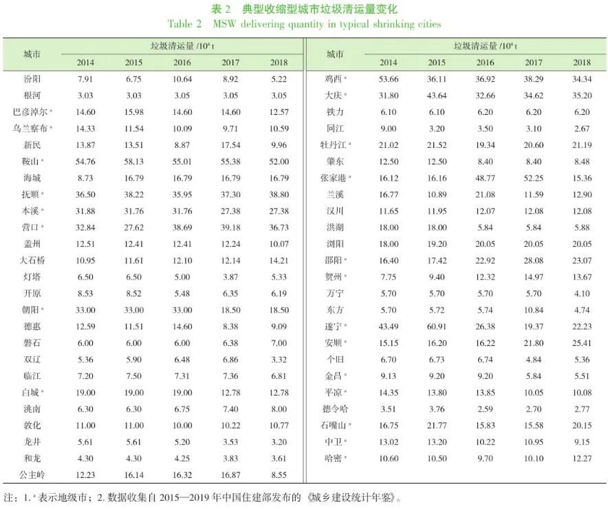 城市收縮是我國城鎮(zhèn)化發(fā)展面臨的重大趨勢,這一趨勢也會對生活垃圾的產(chǎn)生與處理產(chǎn)生重要影響。本研究首次對收縮型城市的生活垃圾管理問題進(jìn)行了分析,目前尚未有相關(guān)研究。