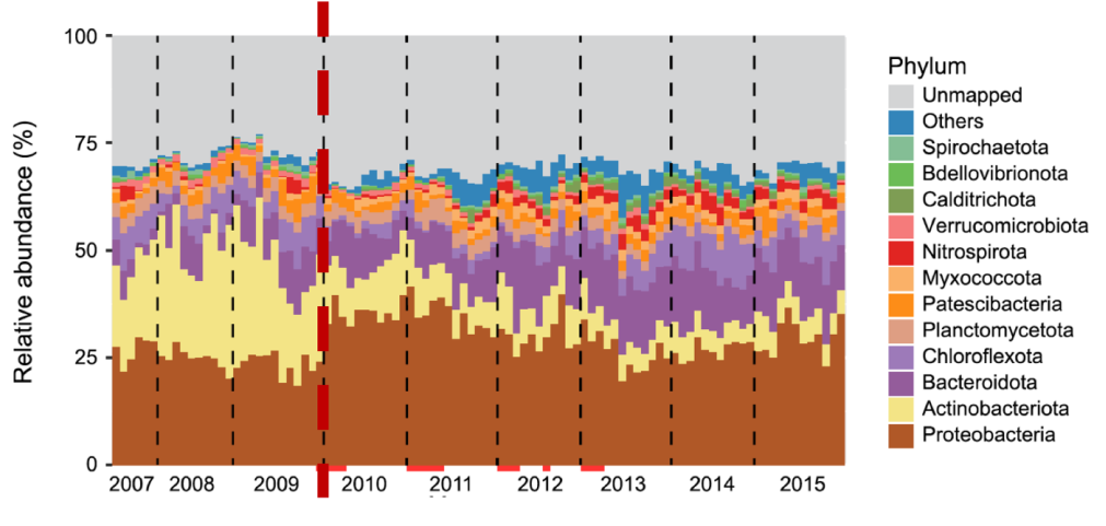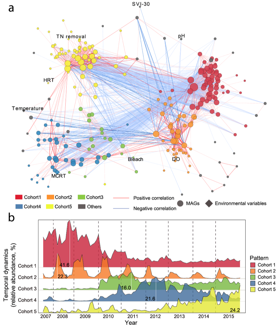 2021年10月,學(xué)術(shù)期刊Microbiome發(fā)表香港大學(xué)張彤教授團(tuán)隊(duì)的相關(guān)研究成果,他們對香港的沙田污水處理廠進(jìn)行了長達(dá)9年的跟蹤研究,他們的研究成果進(jìn)一步加深了我們對活性污泥微生物群落演變的認(rèn)識。