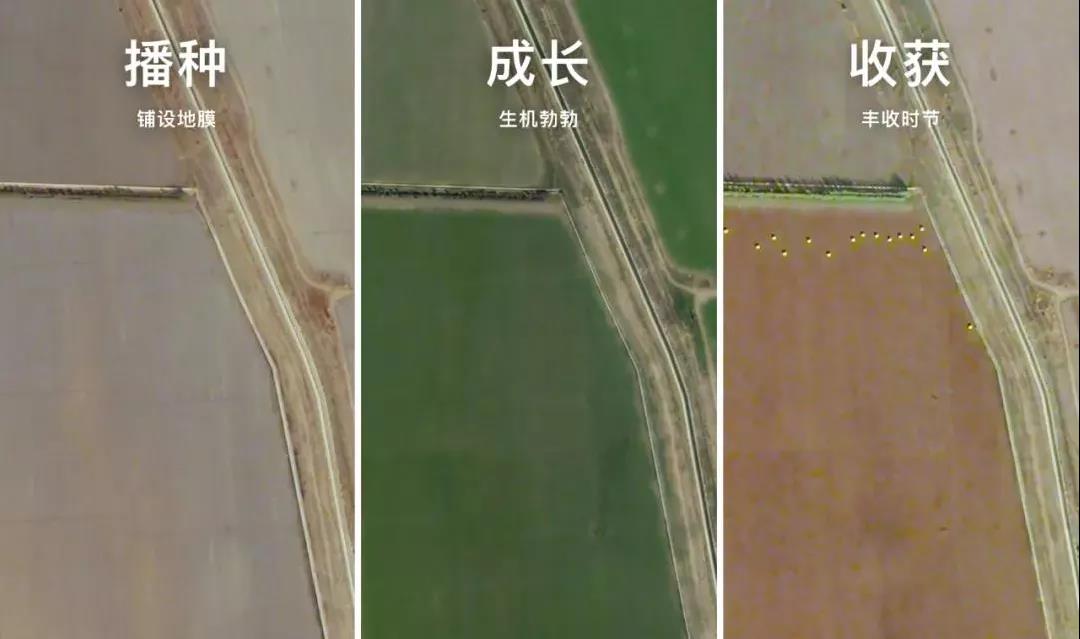 衛(wèi)星視角記錄下新疆棉田從棉花播種、成長,再到收獲各個時期的狀態(tài)。