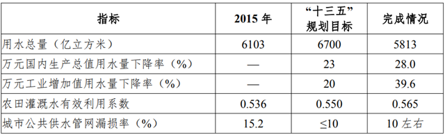 我國(guó)在“十三五”節(jié)水型社會(huì)建設(shè)主要目標(biāo)指標(biāo)完成情況,見下圖: