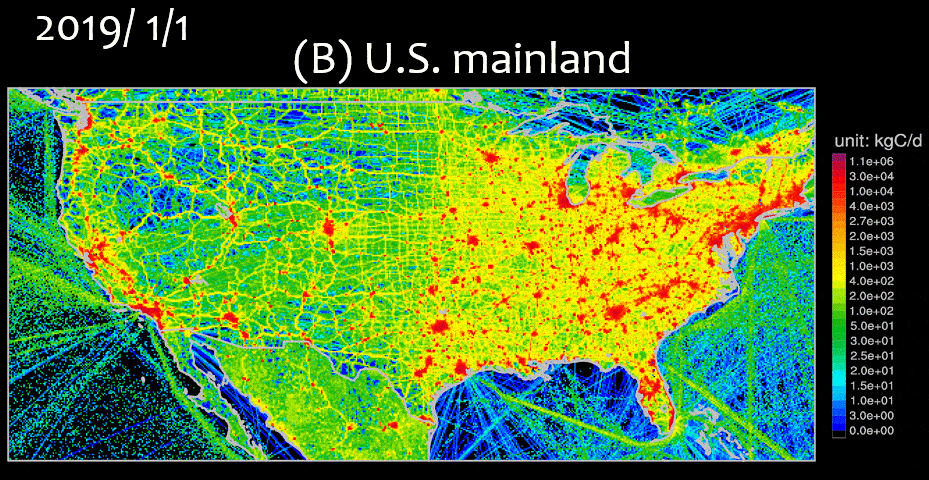 近實(shí)時(shí)全球碳地圖反映出人類活動(dòng)變化導(dǎo)致的碳排放時(shí)空動(dòng)態(tài)變化特征,包括氣候、季節(jié)、節(jié)假日甚至是新冠疫情對(duì)碳排放的實(shí)時(shí)動(dòng)態(tài)變化。