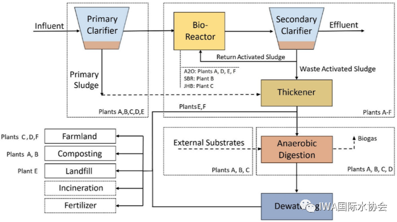 在報(bào)告里,作者們用A-F來表示六座污水廠。其工藝概況如下表所示: