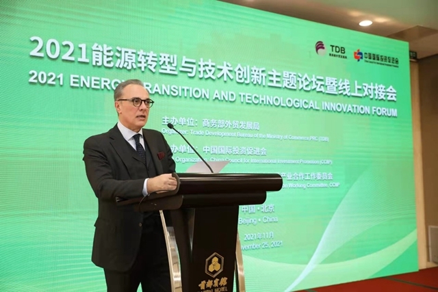 2021年11月25日下午,由商務(wù)部外貿(mào)發(fā)展局主辦、中國(guó)國(guó)際投資促進(jìn)會(huì)承辦、中國(guó)國(guó)際投資促進(jìn)會(huì)能源產(chǎn)業(yè)合作工作委員會(huì)協(xié)辦的“2021年能源轉(zhuǎn)型與技術(shù)創(chuàng)新主題論壇暨線上對(duì)接會(huì)”成功舉辦。本次論壇以“能源轉(zhuǎn)型與技術(shù)創(chuàng)新”為主題,聚焦“雙碳目標(biāo)”背景下的能源轉(zhuǎn)型與技術(shù)創(chuàng)新,宣傳推廣自主品牌企業(yè),促進(jìn)中外企業(yè)在清潔能源開發(fā)利用、傳統(tǒng)能源節(jié)能減排等領(lǐng)域開展深入交流與合作。