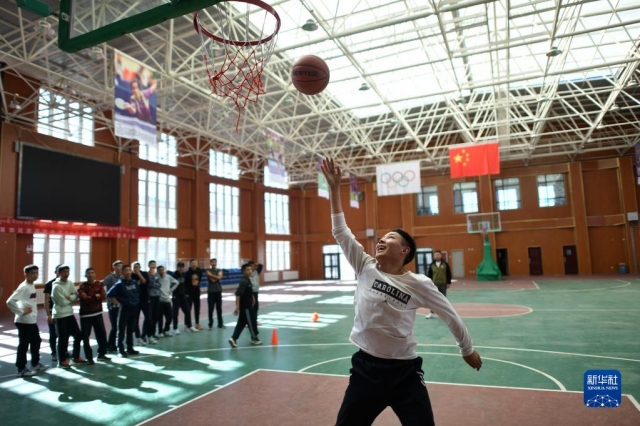 11月25日,青海省海南藏族自治州興海縣民族高級(jí)中學(xué)學(xué)生在室內(nèi)籃球館訓(xùn)練。新華社記者 駱曉飛 攝