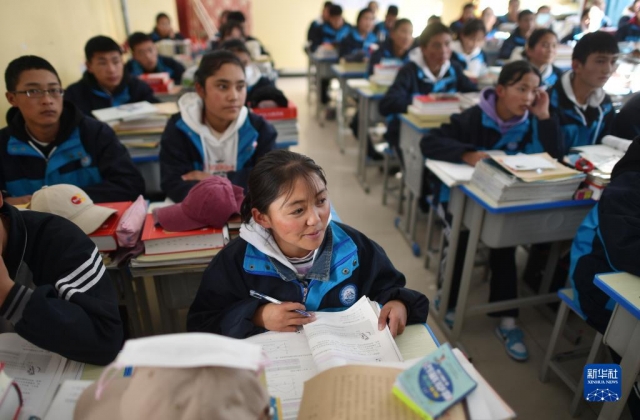 11月25日,青海省海南藏族自治州興??h民族高級(jí)中學(xué)高一(1)班學(xué)生在教室內(nèi)聽講。新華社記者 駱曉飛 攝