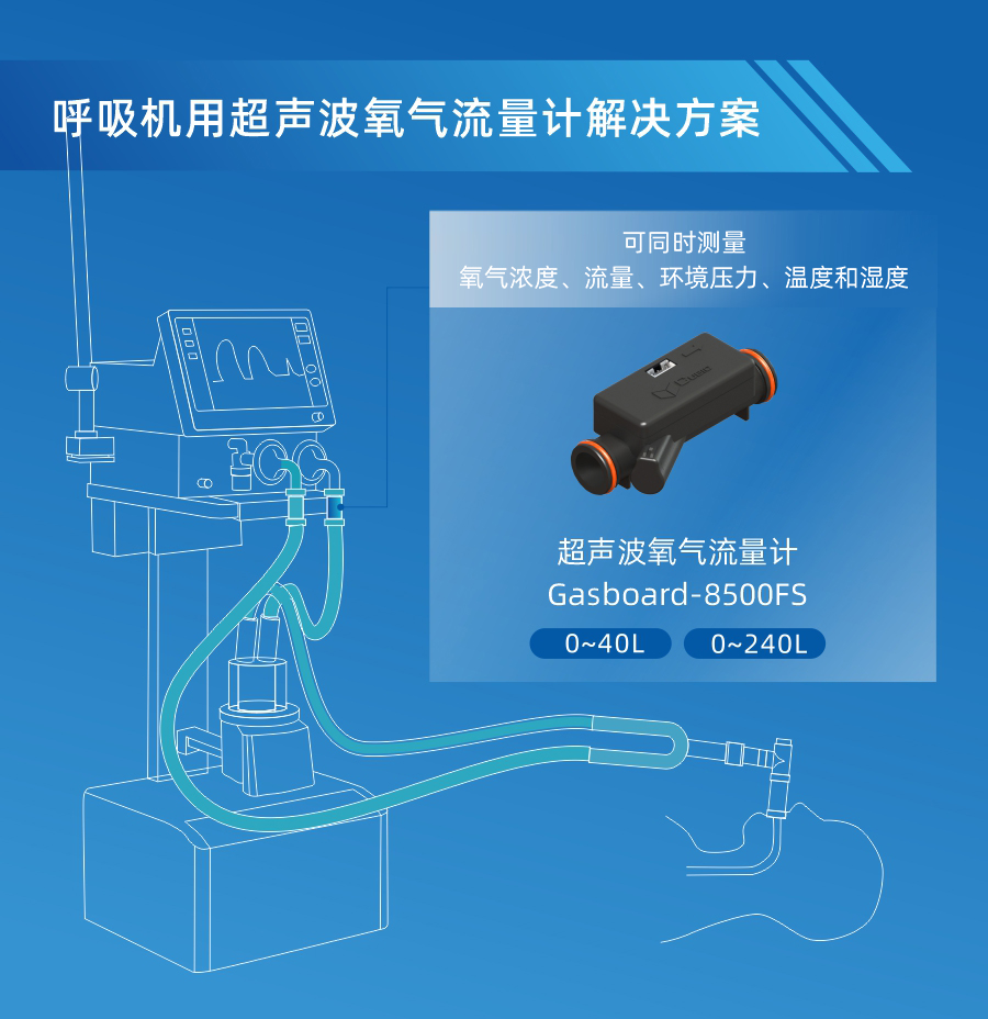 四方光電在健康醫(yī)療領(lǐng)域推出的Gasboard-8500FS超聲波氧氣流量計(jì),可同時(shí)檢測(cè)氧氣的濃度、流量、壓力、溫度和濕度等指標(biāo),并通過串口或模擬信號(hào)輸出。傳感器具有生命周期內(nèi)無零點(diǎn)漂移、響應(yīng)快速、穩(wěn)定性好、精度高及壽命長(zhǎng)等優(yōu)勢(shì),接口按照ISO 5356設(shè)計(jì),采用密封圈方式,更好的滿足客戶的安裝使用需求。目前Gasboard-8500FS流量可達(dá)240L/min,滿足呼吸機(jī)、麻醉機(jī)、高流量濕化治療儀等呼吸醫(yī)療設(shè)備的應(yīng)用需求。