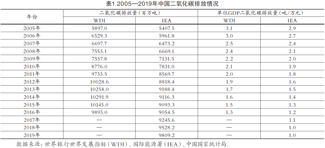 雖然中國二氧化碳排放的總量較高,但也在控制碳排放、實(shí)現(xiàn)綠色發(fā)展方面取得了積極進(jìn)展。一方面,二氧化碳排放增速明顯放緩。2005—2010年二氧化碳排放年均增速約達(dá)8%,2011—2015年下降至3%,2016—2019年進(jìn)一步下降至約1.9%。另一方面,單位GDP的二氧化碳排放強(qiáng)度逐步下降。根據(jù)IEA公布的數(shù)據(jù)進(jìn)行測(cè)算,中國單位GDP的二氧化碳排放從2005年的2.9噸/萬元逐步下降到2019年的1噸/萬元,降幅約60%。這些進(jìn)展在很大程度上受益于能源結(jié)構(gòu)的不斷調(diào)整。