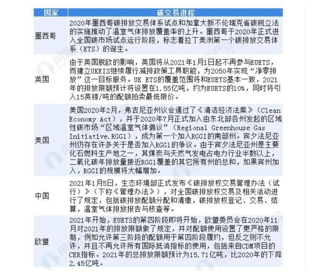 全球主要國家碳交易進程 資料來源:前瞻產(chǎn)業(yè)研究院整理