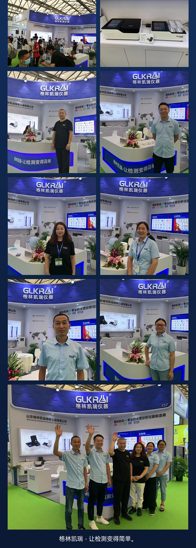 “我們現(xiàn)在能給大家展示的產品和技術越來越多了,數(shù)十款上市的水質分析儀器給我們帶來了不錯的口碑,今年比較受歡迎的是我們的GL-900多參數(shù)水質分析儀、G70Pro多參數(shù)水質檢測站、COD在線自動監(jiān)測儀,還有GL-660多參數(shù)水質檢測儀”