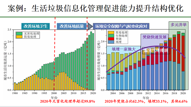 主要有三個(gè)方向:一是傳統(tǒng)模式低碳化。包括甲烷利用挖掘減污降碳存量潛力,工業(yè)固廢的資源化利用等。二是現(xiàn)狀模式零碳化,即能源替代發(fā)揮減污降碳補(bǔ)償優(yōu)勢(shì)。三是未來模式負(fù)碳化,資源循環(huán)形成減污降碳融匯合力??苫厥瘴飶?qiáng)制分類和規(guī)范回收具有顯著碳減排效益。