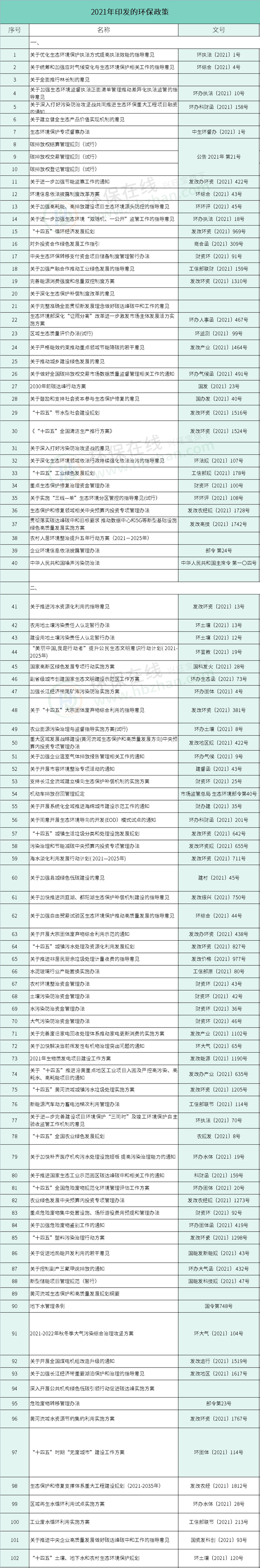 (2021年環(huán)保政策一覽 僅供參考)