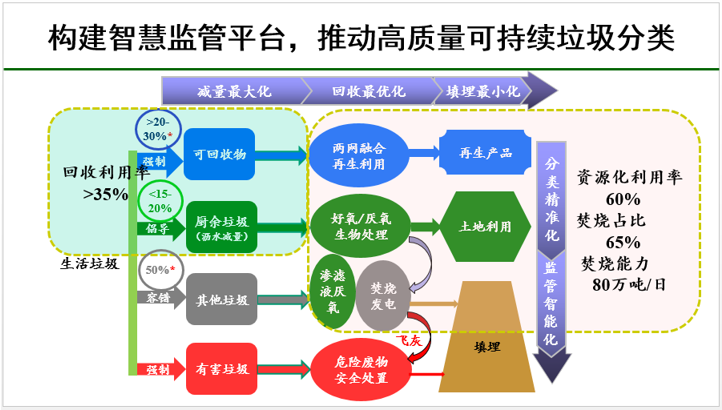 三是,構(gòu)建智慧監(jiān)管平臺(tái),推動(dòng)高質(zhì)量可持續(xù)垃圾分類。垃圾分類靠過去粗放管理方式不可能實(shí)現(xiàn)全覆蓋,必須要借助于信息化手段。要達(dá)成“十四五”規(guī)劃中提到的生活垃圾資源化利用率60%的目標(biāo),生活垃圾就要做到減量最大化、回收最優(yōu)化、填埋最小化,而這些依賴于分類精準(zhǔn)化,說到底要靠監(jiān)管智能化來(lái)實(shí)現(xiàn)。