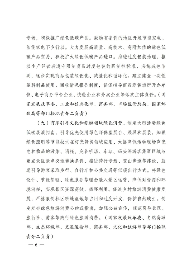 為深入貫徹落實《中共中央、國務(wù)院關(guān)于完整準確全面貫徹新發(fā)展理念做好碳達峰碳中和工作的意見》和《2030年前碳達峰行動方案》有關(guān)要求,根據(jù)碳達峰碳中和工作領(lǐng)導(dǎo)小組部署安排,國家發(fā)展改革委、工業(yè)和信息化部、住房和城鄉(xiāng)建設(shè)部、商務(wù)部、市場監(jiān)管總局、國管局、中直管理局會同有關(guān)部門研究制定了《促進綠色消費實施方案》?,F(xiàn)印發(fā)給你們,請結(jié)合實際,認真抓好貫徹落實。